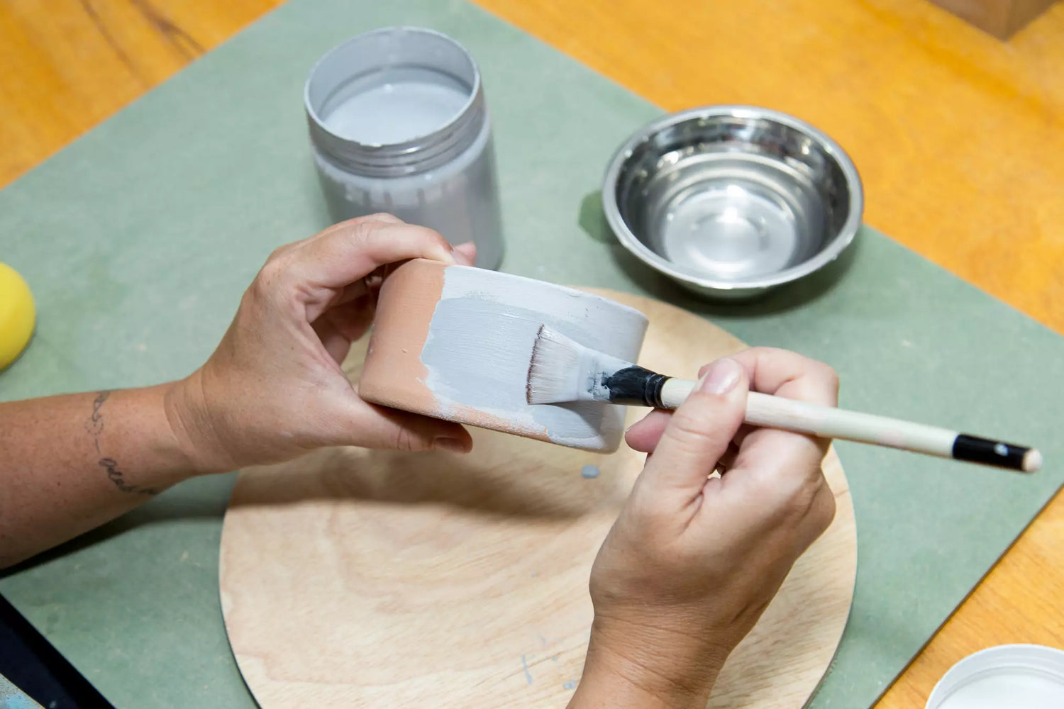 As peças do Ateliê Daniela Miranda são produzidas manualmente, uma a uma, com técnica de modelagem e torno.